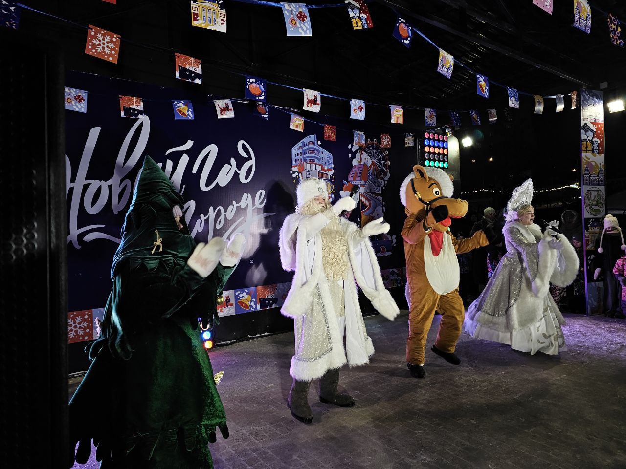 Для самых юных зрителей подготовили конкурсы. Дед Мороз со Снегурочкой и символ наступающего года — Огненная Лошадь организовали для собравшихся новогодние забавы.