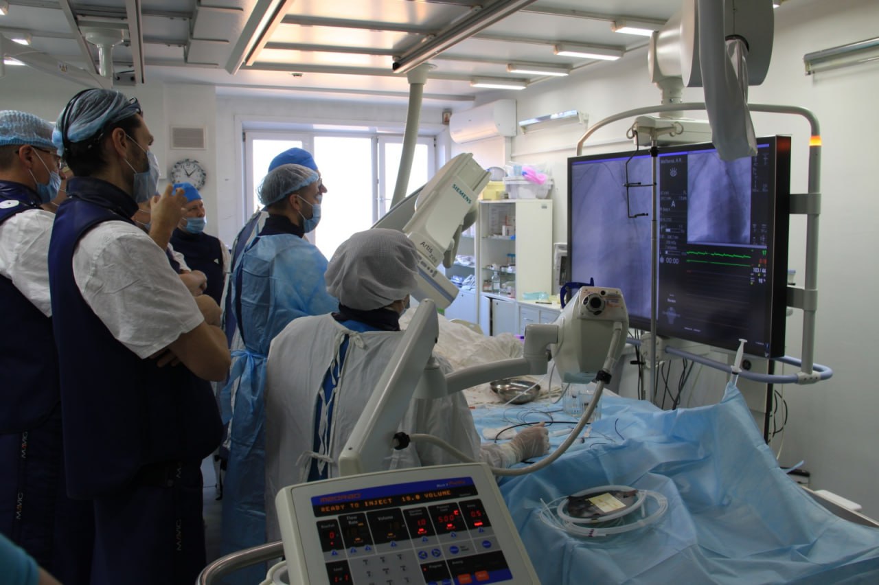В рамках операционного дня, в частности, была продемонстрирована работа «Heart Team» – мультидисциплинарной команды, где кардиохирурги, рентгенэндоваскулярные хирурги и анестезиологи-реаниматологи совместно определяют оптимальную тактику для каждого пациента. Это позволило помочь ребенку со стенозом легочной артерии после нескольких перенесенных открытых операций. Из-за сформировавшегося сужения одна из легочных артерий не получала достаточного объема крови.