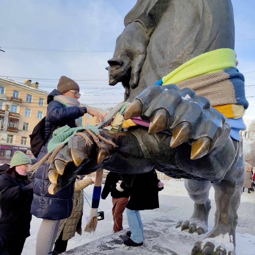 А конкретно — сотрудники подрядной организации, которая ухаживает за памятниками и общественными местами. Парни говорят, что по правилам на скульптурах не должно быть ничего лишнего, потому они и убрали 19-метровый аксессуар. После шумихи в сети решили вернуть.