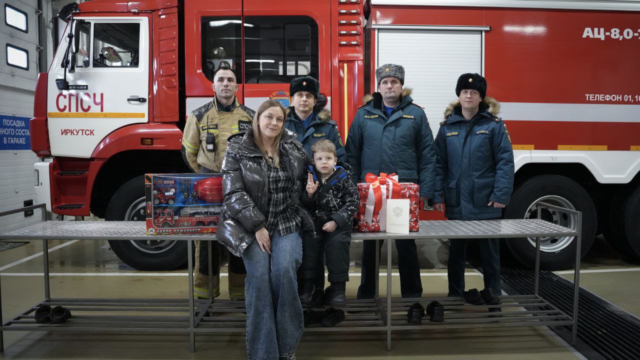 Для Мирона и его мамы Елены Олеговны Александровой организовали экскурсию в специализированную пожарно-спасательную часть ГУ МЧС России по Иркутской области. После поездки на пожарной машине Мирону вручили новогодние подарки.