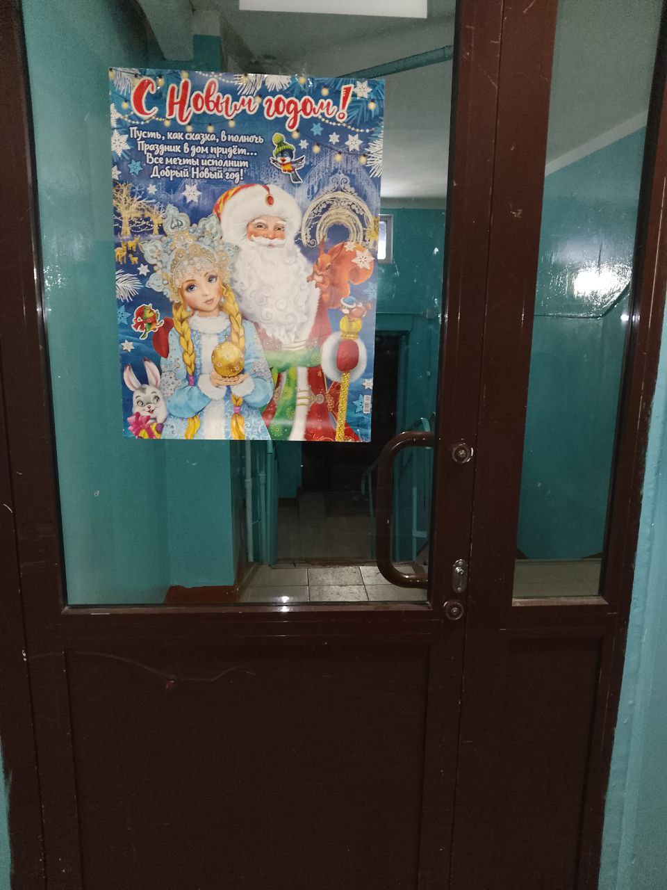 Жители дома № 70 в микрорайоне Университетский повесили яркие плакаты, установили елку и нарядили ее мишурой, шарами и другими самодельными игрушками.