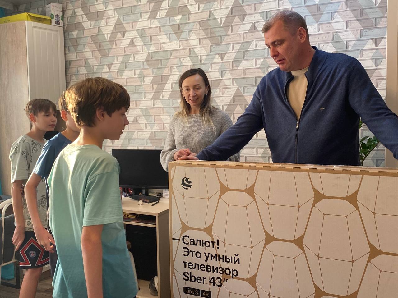Николай и Анна Лизины приобрели телевизор для семьи, где растут тройняшки. Супруги отметили, что настоящее счастье – видеть, как загораются глаза у детей.