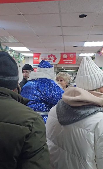 Поздравление Деда Мороза в очереди за колбасой и пустые полки. Что происходит в супермаркетах Иркутска днем 31 декабря