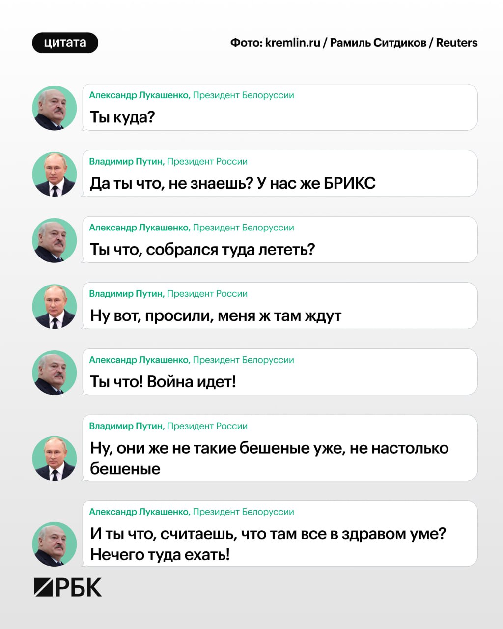 Лукашенко пересказал разговор с Путиным, который перед саммитом БРИКС в ЮАР «собирал чемоданы». По его словам, был «такой дружеский, братский разговор, [как] старшему брату [говорил]».