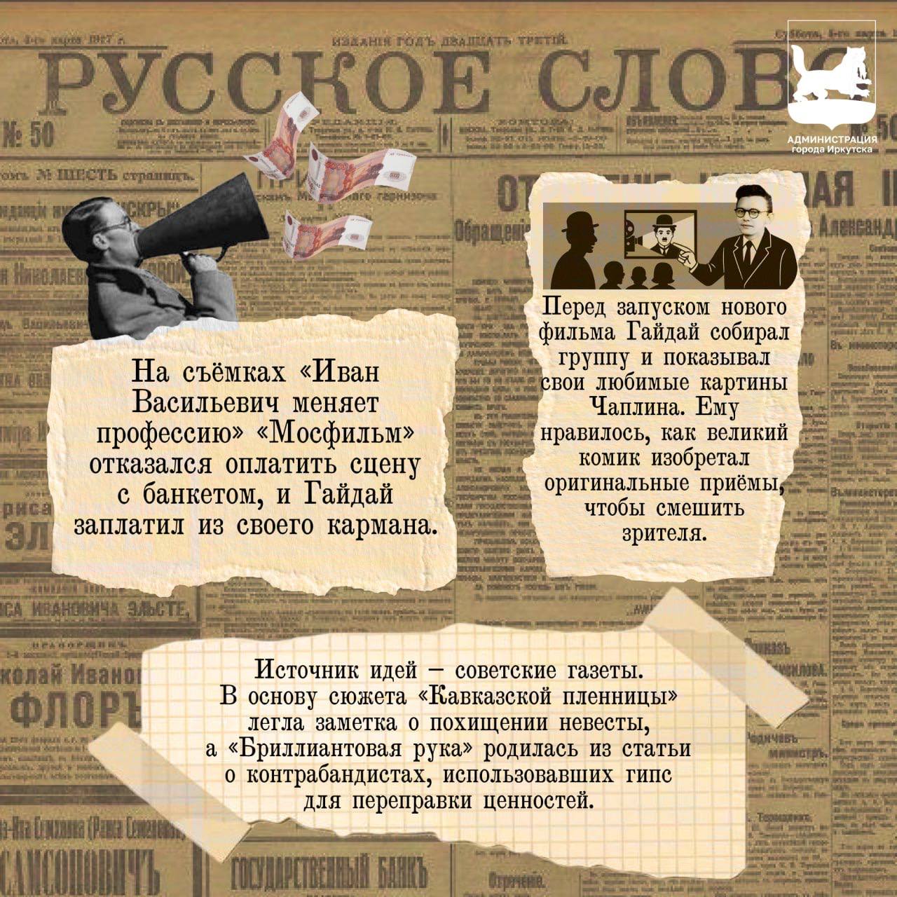 Пока смотрите любимое кино, прочтите #ИркутскийАлфавит , посвящённый нашему земляку Леониду Гайдаю.
