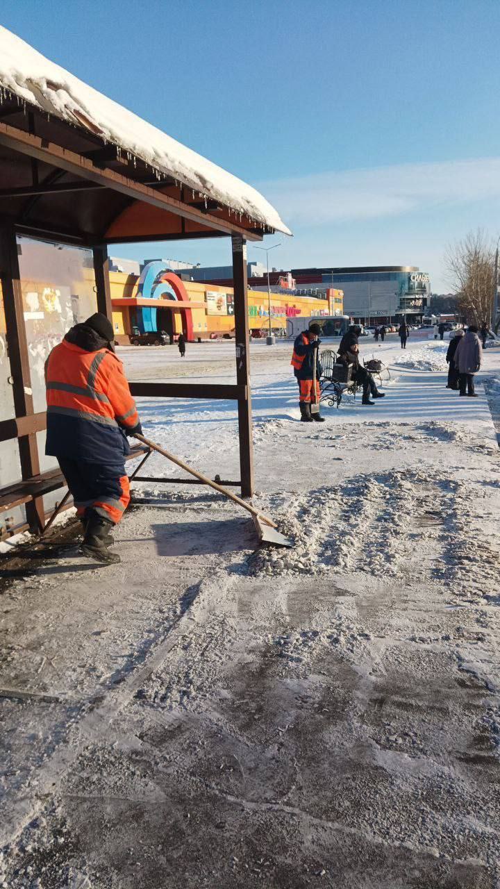 Остановки общественного транспорта расчищают на Главной Кировской, Аргунова, Сергеева, Багратиона, Розы Люксембург, бульваре Рябикова, Депутатской, Байкальской, в Юбилейном. Ведется уборка дорожных лотков, заездных и парковочных карманов, лестниц во всех районах города.