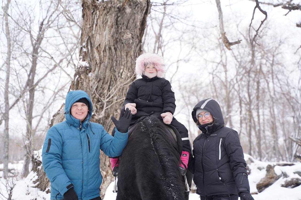 Вместе с родителями, старшим братом и бабушкой Аня отправилась верхом на прогулку по реликтовой тополиной роще. По пути им рассказали про историю поселка, тополей, часовни Николая Чудотворца, которая находится на берегу Байкала. Завершился маршрут в волшебном месте — возле дерева с силуэтом единорога, которое по рассказам местных исполняет желания. Дети загадали их, приложив руки к стволу.