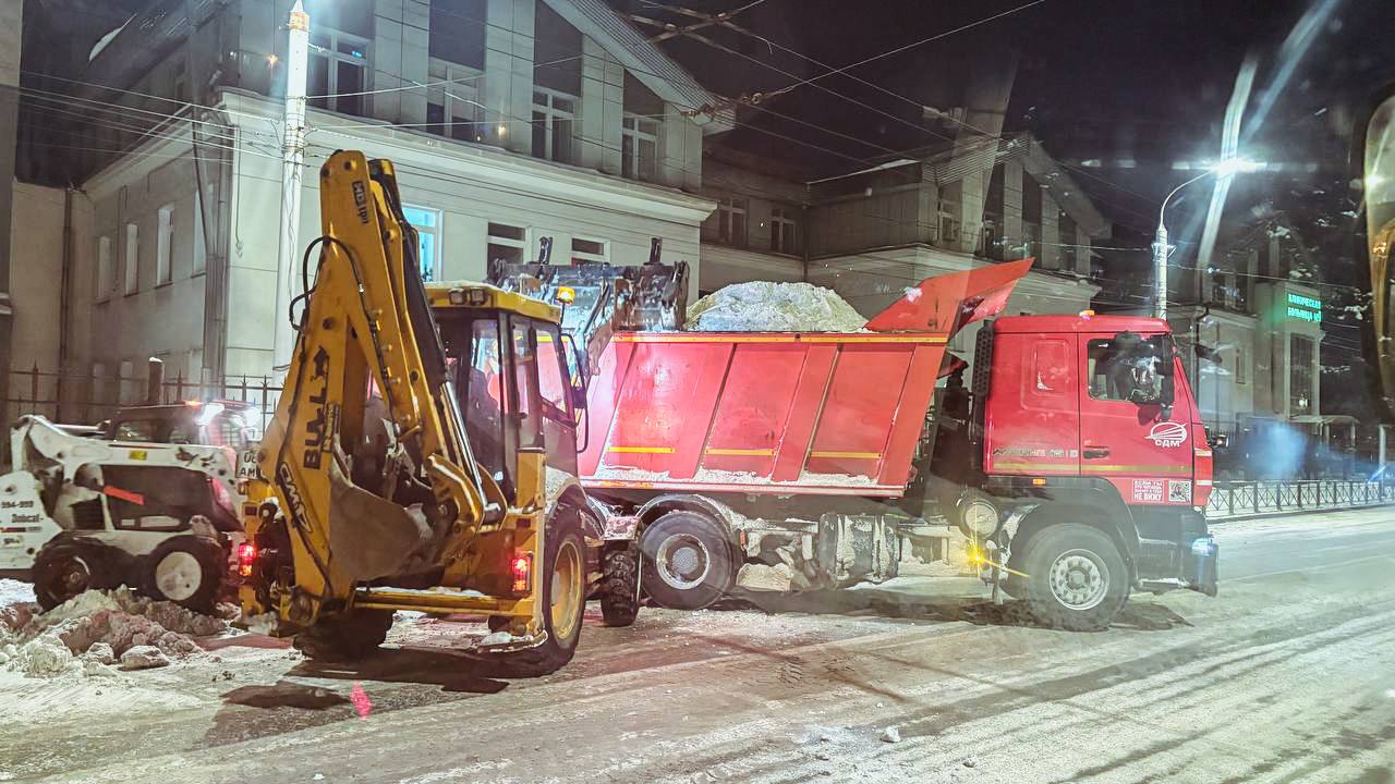 Работы проводятся по поручению мэра Руслана Болотова. Подрядчики расчищают проезжие части и тротуары круглосуточно.