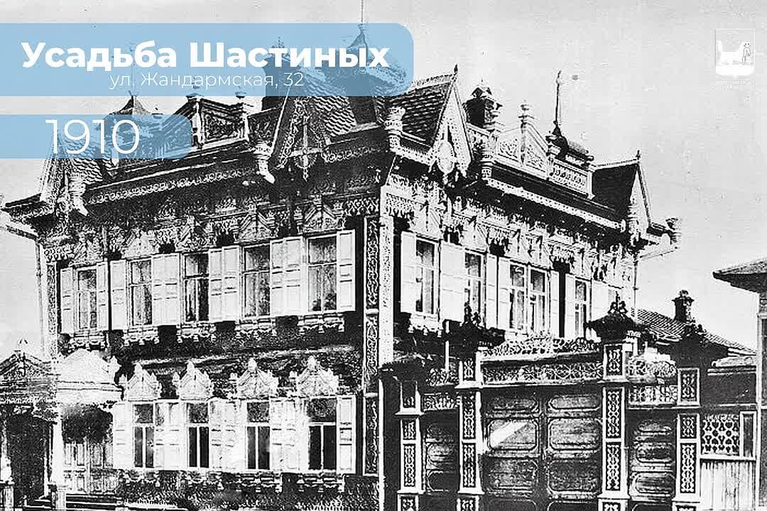 Свой узнаваемый облик дом получил в 1907 году. Тогда усадьбой владел почётный гражданин Иркутска Аполлос Шастин. Именно при нём резьба стала ещё сложнее и богаче.