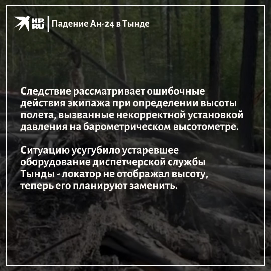 Самолёт Ан 24 авиакомпании «Ангара», который потерпел крушение под Тындой 24 июля 2025 года, во время захода на посадку летел на 500 метров ниже безопасной высоты. Как сообщил КП-Иркутск руководитель отдела криминалистики Восточного межрегионального следственного управления на транспорте СК РФ Станислав Асташенко, сильный ливень и плотная облачность полностью лишили экипаж возможности визуально контролировать расстояние до земли.