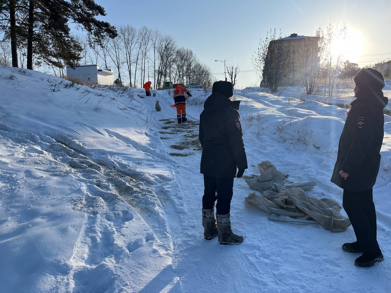 В ходе рейда госавтоинспекторы, инспекторы ПДН, и подрядная организация администрации Ангарского городского округа, выявили горку в 189 квартале за парком Дворца культуры