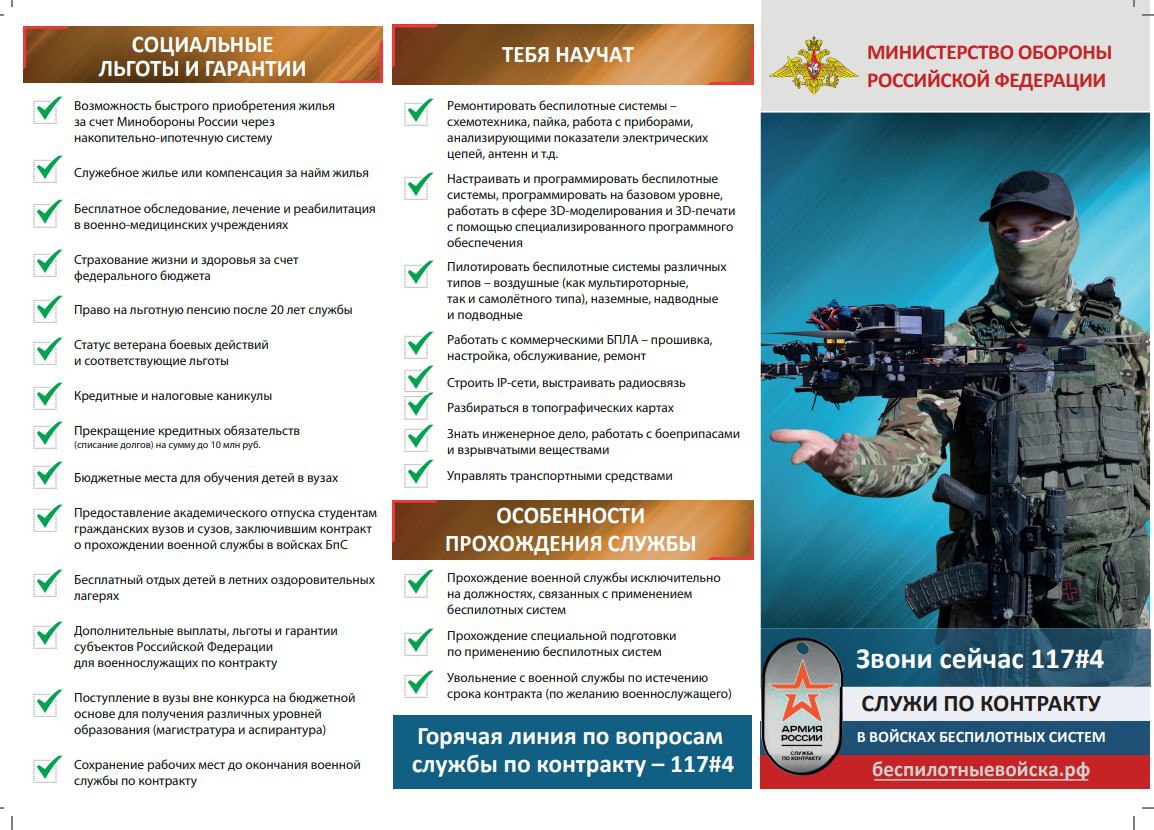В конце прошлого года Министерство обороны Российской Федерации объявило набор граждан на военную службу по контракту по специальности «Оператор беспилотных летательных аппаратов (БПЛА)» для выполнения задач в зоне специальной военной операции.