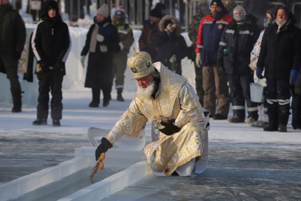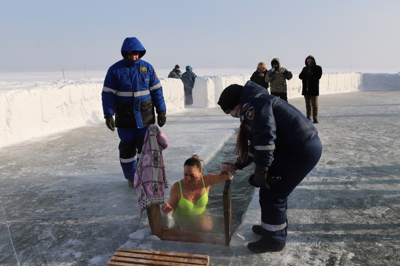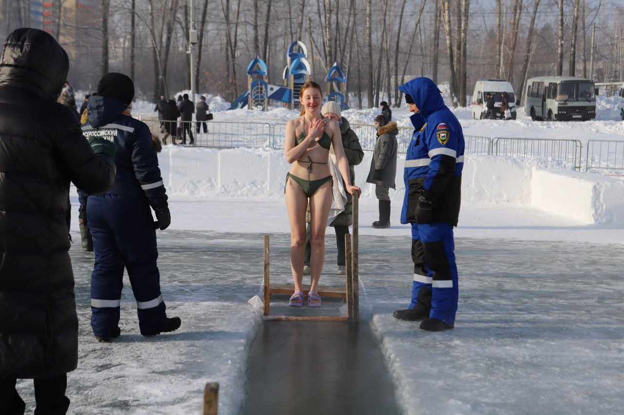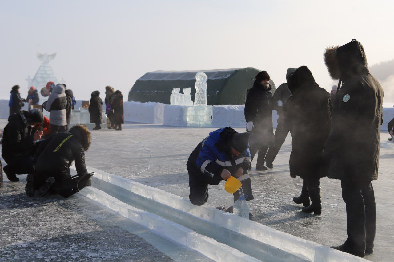 – Благодарю всех, кто, несмотря на мороз, участвовал в подготовке к празднику, создавал ледяные произведения искусств. Низкий поклон тем, кто сегодня обеспечивает здесь безопасность и комфорт. Все выполнено и проходит на достойном уровне. Рекомендую участникам события соблюдать осторожность. Отмечу, совершить обряд омовения можно только до полуночи, после этого проруби будут засыпаны, – подчеркнул мэр Руслан Болотов.