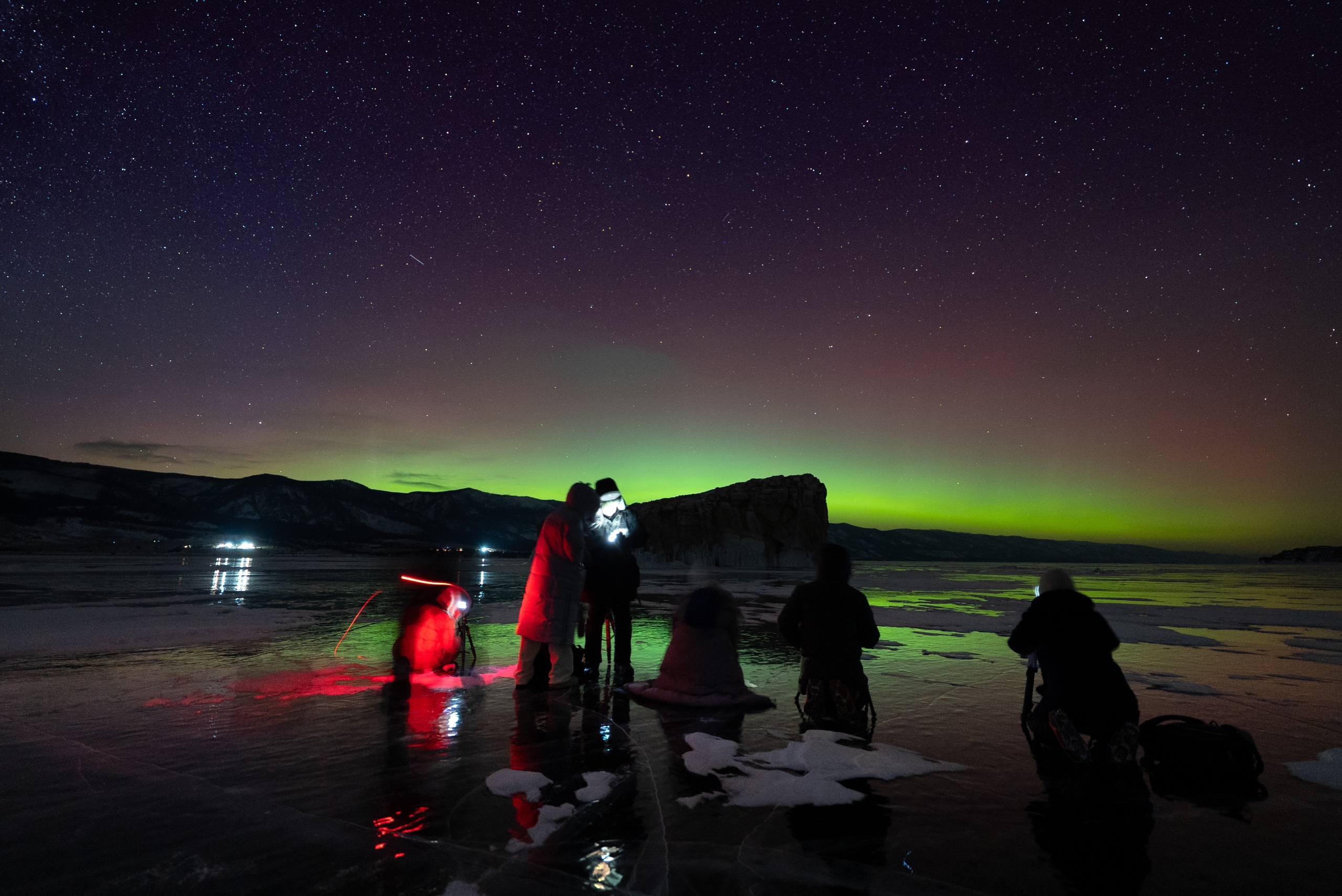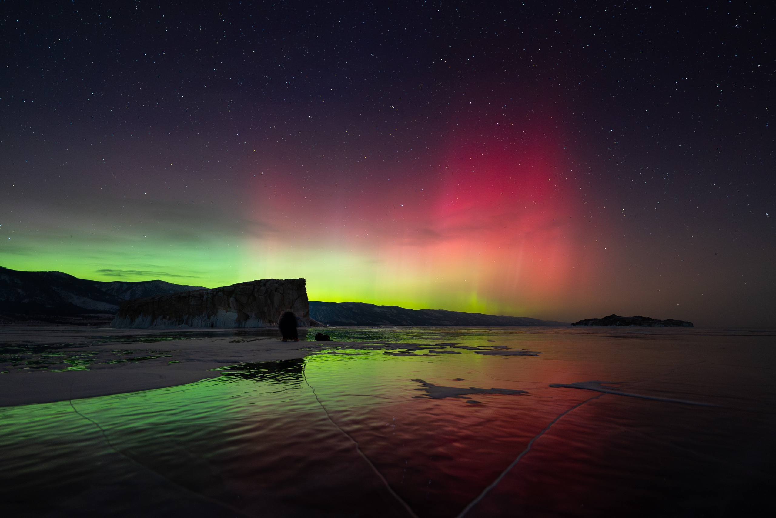Сегодня вечером, 20 января, фотограф Станислав Толстнев поймал в кадр мощное полярное сияние на Байкале.