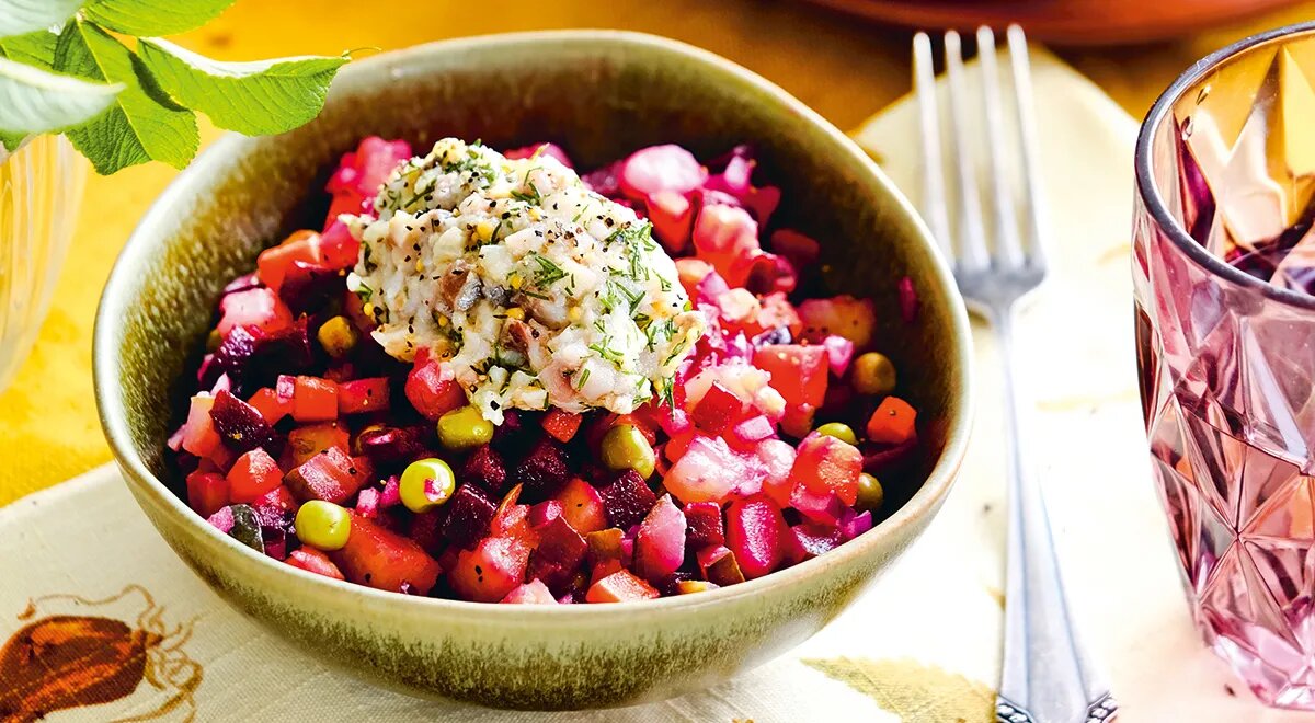 - Винегрет с печеными овощами и сельдью — это старинное блюдо обрело новую жизнь благодаря запеченным овощам.