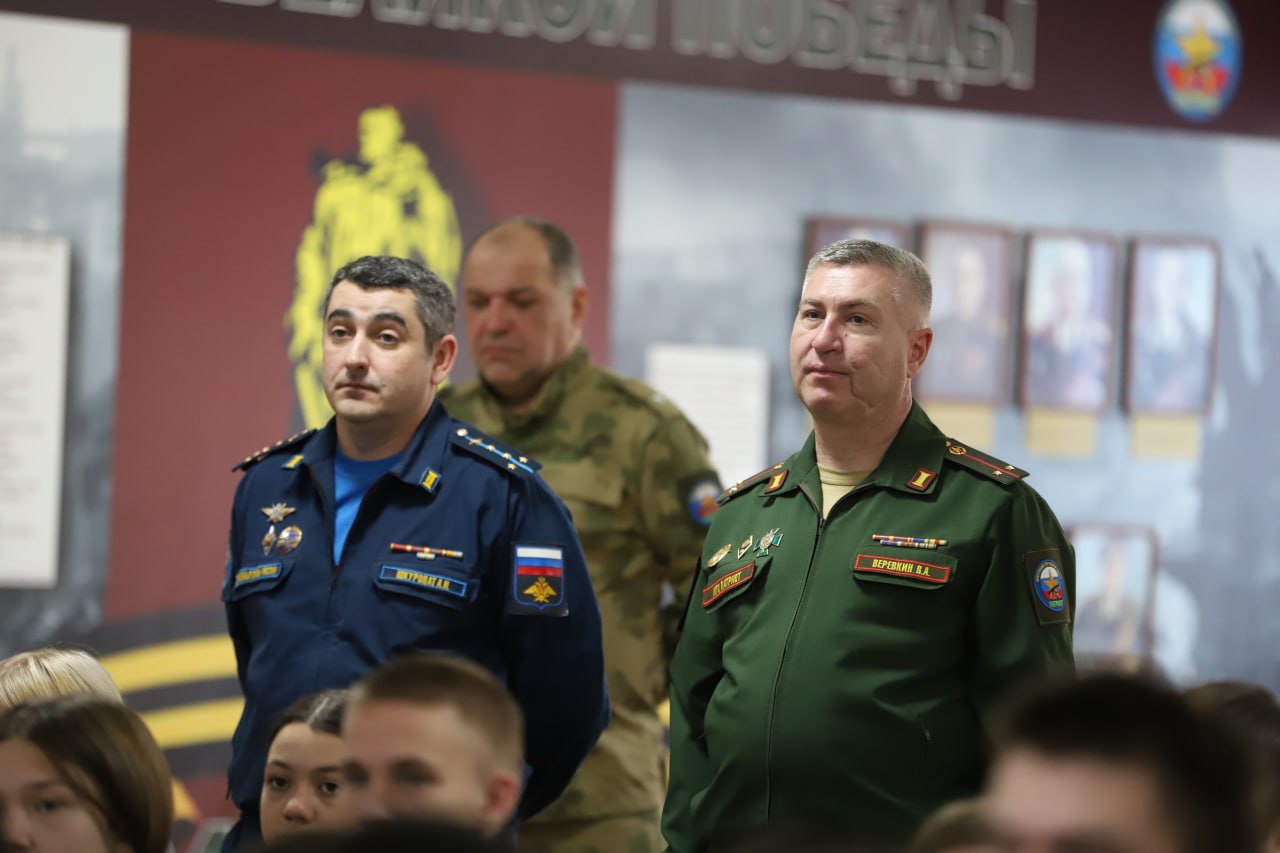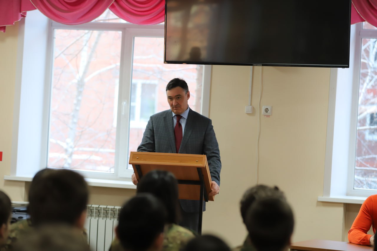 Представление руководителя продолжилось дискуссией о военной истории страны, современной ситуации и ближайших перспективах. Приглашенные спикеры рассказали курсантам о своем опыте участия в вооруженных конфликтах, оказании помощи участникам СВО и их семьям. Ими стали вице-мэр Иркутска Сергей Кладов, участник СВО, награжденный нагрудным знаком «За штурм», Максим Обухов, депутат городской Думы, волонтер СВО Михаил Кудрявцев.