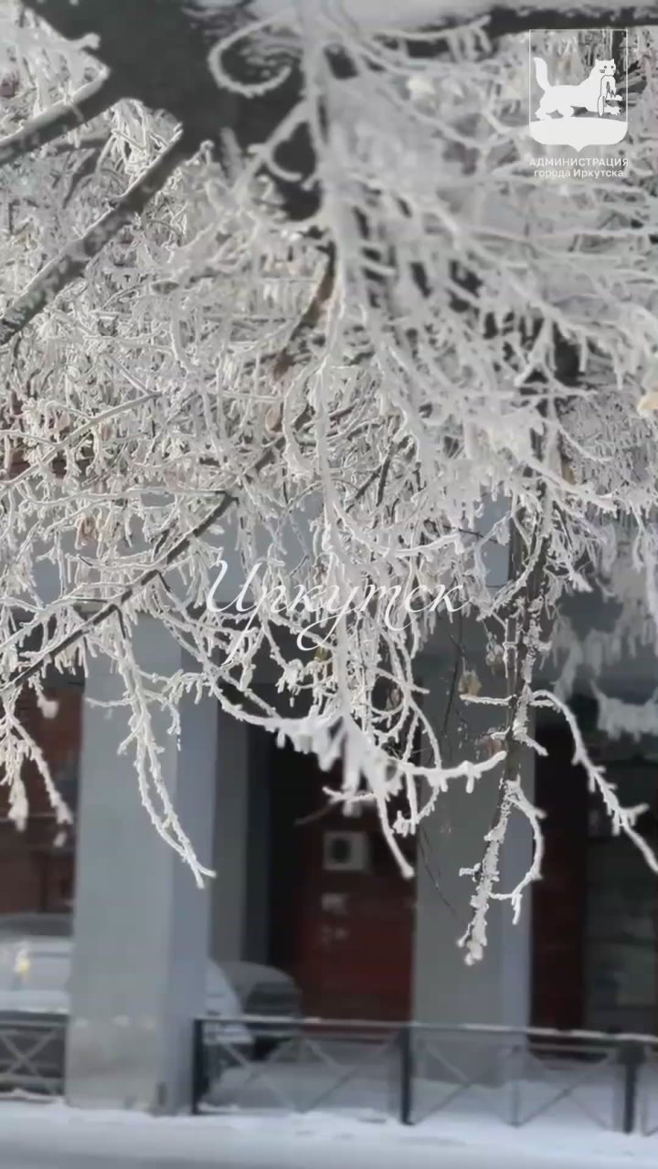 В Иркутске немного теплеет! Уже не так холодно, в центре рассеялся морозный туман, а деревья по-прежнему в удивительно красивом куржаке.