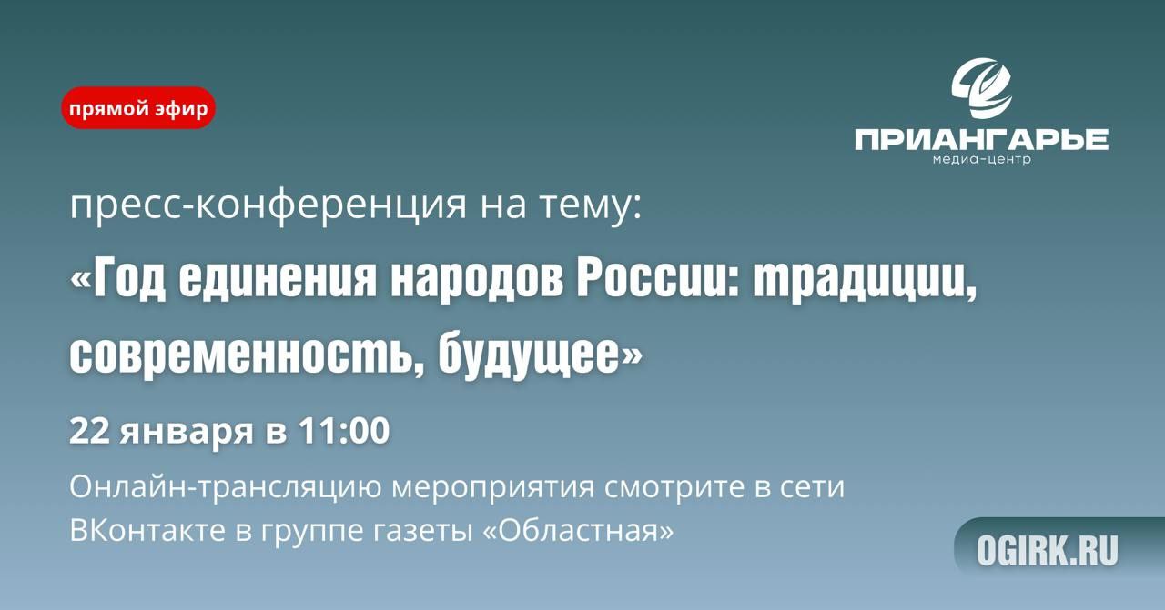 В ходе пресс-конференции дадим старт Году единения народов России в Иркутской области. Узнаем, каковы основные цели и задачи Года, число национальностей, представленных в Иркутской области, роль национально-культурных автономий и Ассамблеи в подготовке, какие мероприятия готовят учреждения культуры в рамках празднования, как будет вовлечена молодежь помимо традиционных фестивалей и др.