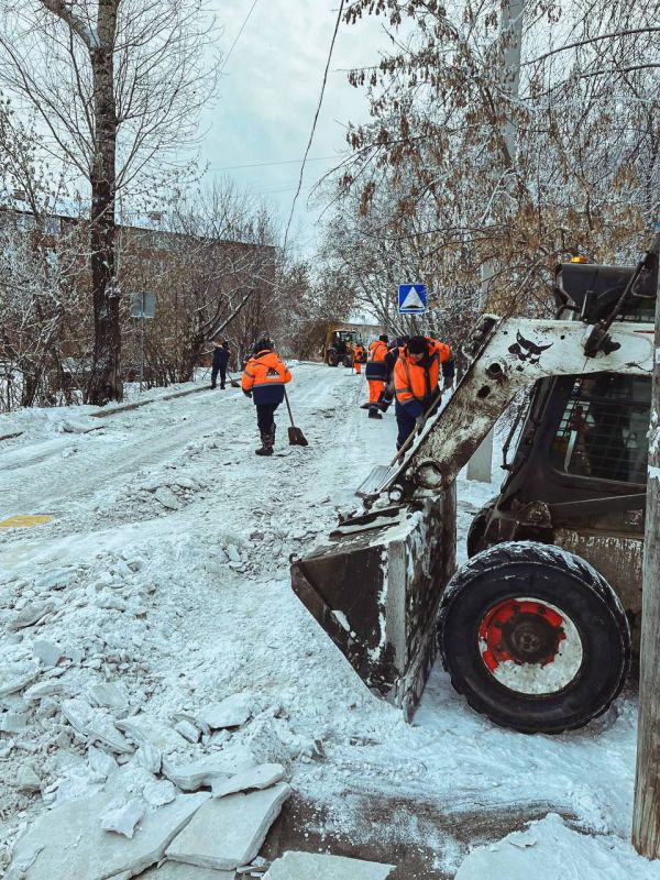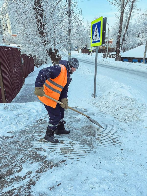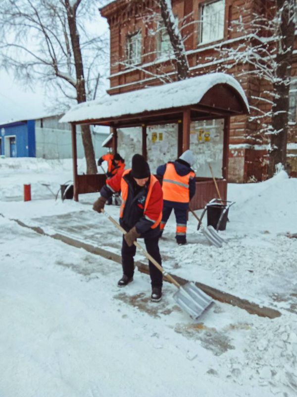 Вручную расчищают пешеходные зоны и при необходимости производят обработку противогололедными материалами на улицах Дзержинского, Степана Разина, Седова, Чкалова, Сухэ-Батора, Польских Повстанцев, Пролетарская, Желябова, Халтурина, Некрасова, Марата, Свердлова, Горького, Тимирязева, Кайская, Гоголя, Костычева, в переулке Гусарова.