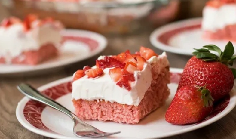 Украшение: Очистить клубнику и нарезать ее пластинками. Украсить верх торта клубничными «дольками» и свежей мятой.