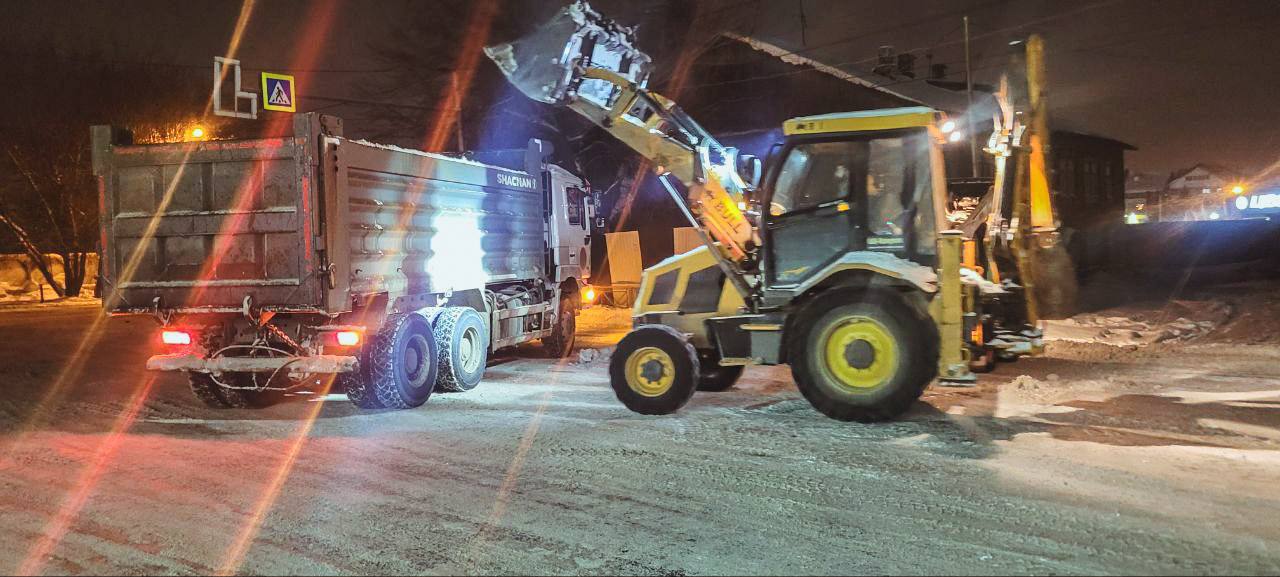 В ночь на понедельник вывезли около 2900 тонн снежных масс. Днем подрядчики продолжают такие работы на участках Байкальской, Пискунова, Партизанской, Халтурина, Депутатской, Сибирской, Каландаришвили, Напольной, Тимирязева, Киевской, Сибирских Партизан, Кайской, Полярной, Бородина, 1-й Кировской, Улан-Баторской. Также технику задействуют на улицах 2-й и 3-й категорий.
