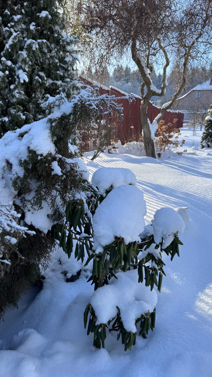В холодной тиши зимы сад превращается в маленькую сцену: блеск инея, шорох снега и неожиданный акцент на двух рододендронах, каждый из которых по-своему неповторим. Природа заставляет наблюдать внимательнее: как кусты сохраняют зелень и дарят цветочные предчувствия, даже когда дни коротки и мороз крепчает.