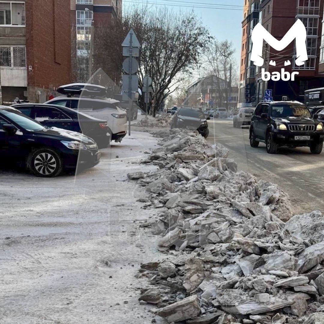 Машины оказались в ловушке после очистки дорог от сугробов и наледи в Иркутске. Люди жалуются, что снежные валы перекрыли пути к трамвайным остановкам, лестницам, тротуарам и выездам со дворов.