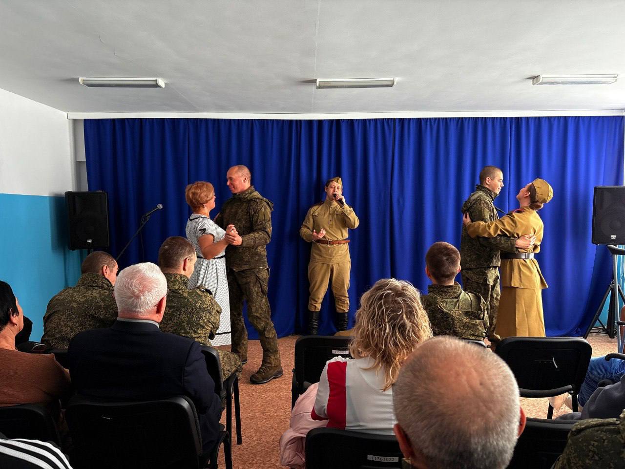 За три дня они дали восемь выступлений — в блиндажах, под навесами на открытых площадках, в бывшем бомбоубежище и клубе, переоборудованном под госпиталь. Военнослужащим, раненым бойцам, воспитанникам детского дома и сотрудникам местного дома культуры показали спектакль «Позывной Теркин» и концертные программы.