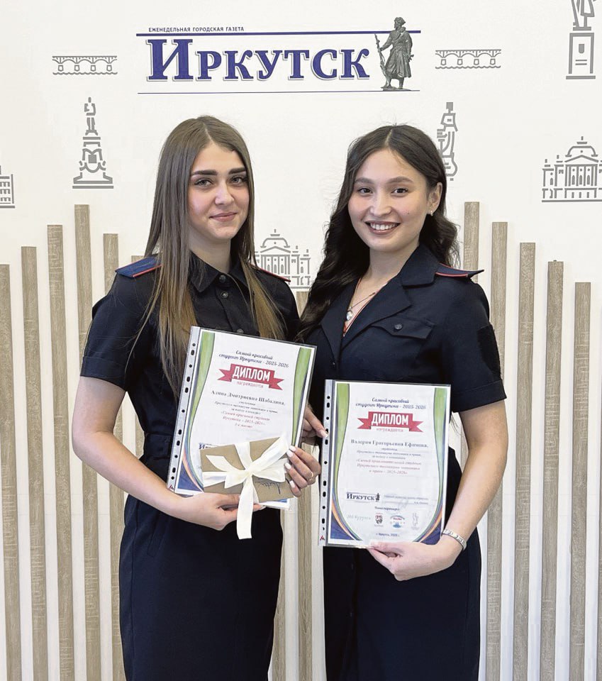 Одними из самых активных участников конкурса стали студенты Иркутского техникума экономики и права. Неудивительно, что из этого учебного заведения призы получили сразу два участника спортсменки, будущие следователи и просто красавицы Валерия Ефимова и Алина Шабалина. Более того, Алина стала абсолютным победителем конкурса, набрав без малого тысячу голосов!