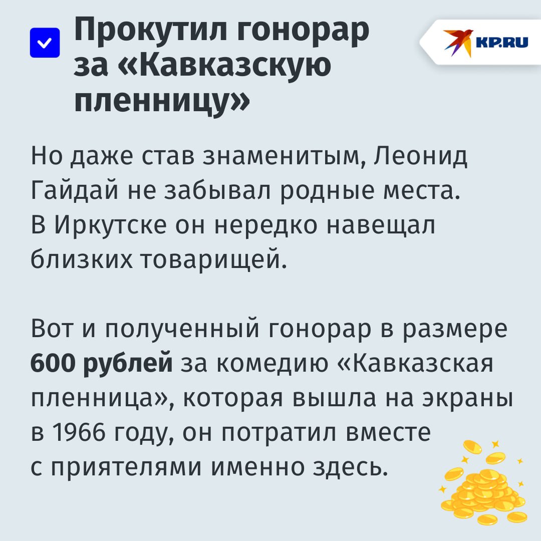 Вспоминаем несколько фактов о жизни Леонида Гайдая в Сибири — в наших карточках, листайте!