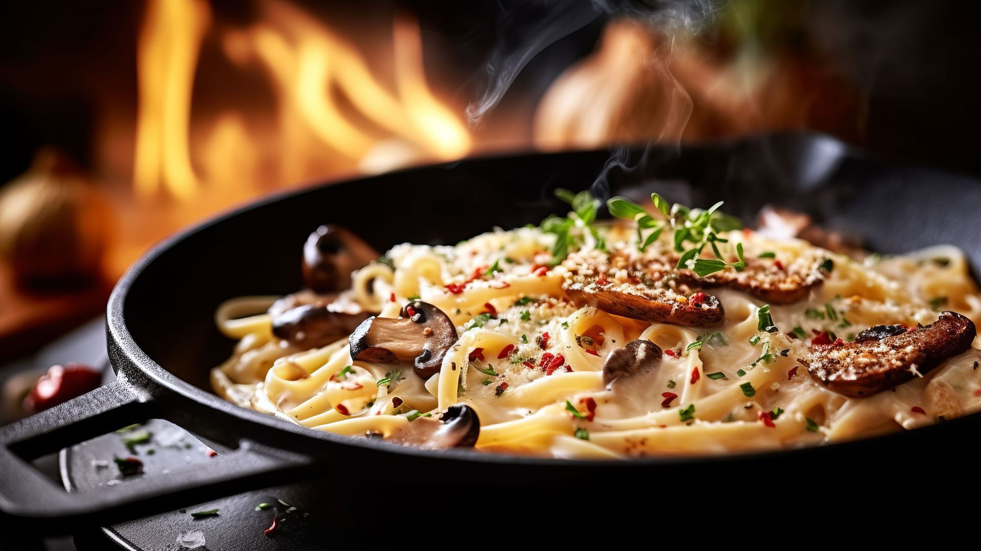 Вводим к сливкам грибную икру и кипятим на слабом огне три минуты. Добавляем пасту, желтки и половину сыра. Солим, перчим, перемешиваем. Сервируем на тарелки, посыпаем второй частью сыра, рассказал эксперт.