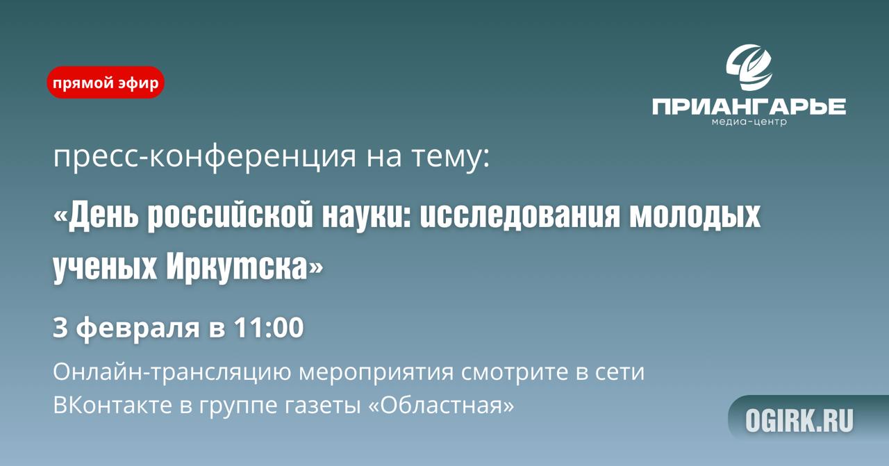 3 февраля в 11:00 в пресс-центре «Областной» пройдет пресс-конференция о научных исследованиях молодых ученых Иркутска