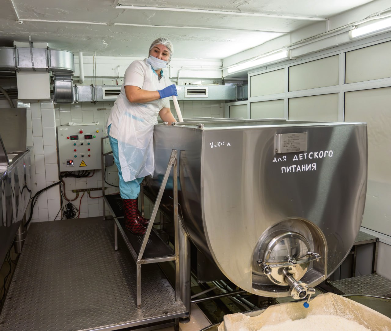 Производство любого продукта начинается с приемки молока: каждое утро, около семи часов, его привозят и сразу проверяют в лаборатории, после чего сырье перегружается в большие стационарные цистерны. Затем оно по трубам из нержавеющей стали (при помощи насосов) отправляется на верхний этаж, проходит пастеризацию, гомогенизацию и распределяется по цехам: в одном будут готовить йогурт, в другом — творог, в третьем — коктейль и так далее.