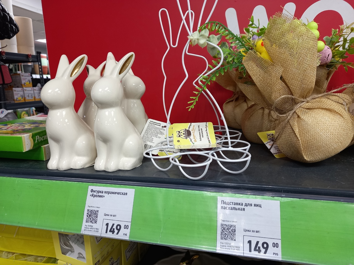 Прошлогодние большие курицы уже не так популярны, и в новом обремении представлены модели меньшего размера. Среди них есть экземпляры с трещинами и дефектами, так что стоит внимательно проверять качество товара перед покупкой. Мелкие декоры, такие как свечи и гирлянды, также довольно распространены, но без замечательного качества.