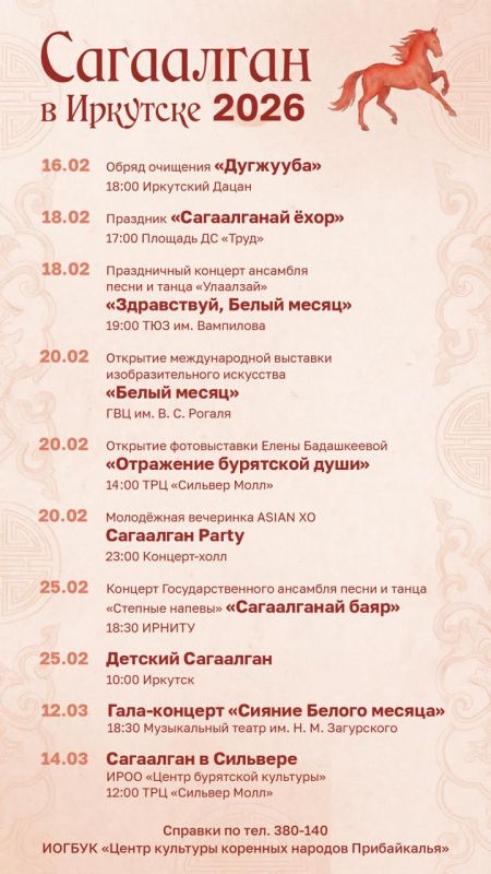 В феврале в Иркутске планируется насыщенная программа: от обрядов и традиционных гуляний до современных вечеринок и выставок.«Центр культуры коренных народов Прибайкалья» поделился с нами афишей.