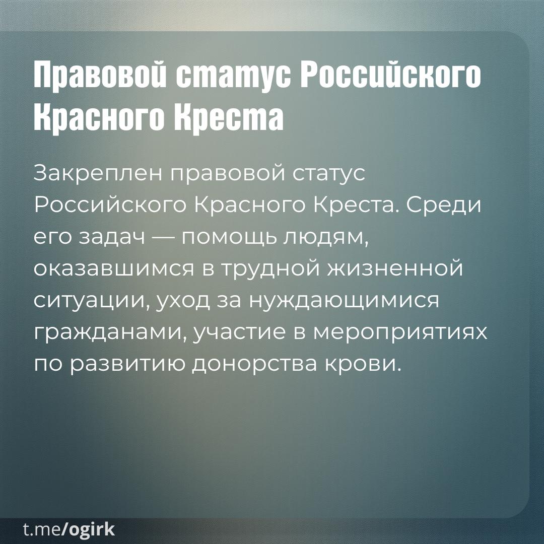 В феврале вступает в силу закон, закрепляющий правовой статус Российского Красного Креста. Пособия и маткапитал проиндексируют, а права граждан дополнительно защитят при возврате товаров ненадлежащего качества. Об этих и других законах — в наших карточках и на сайте.