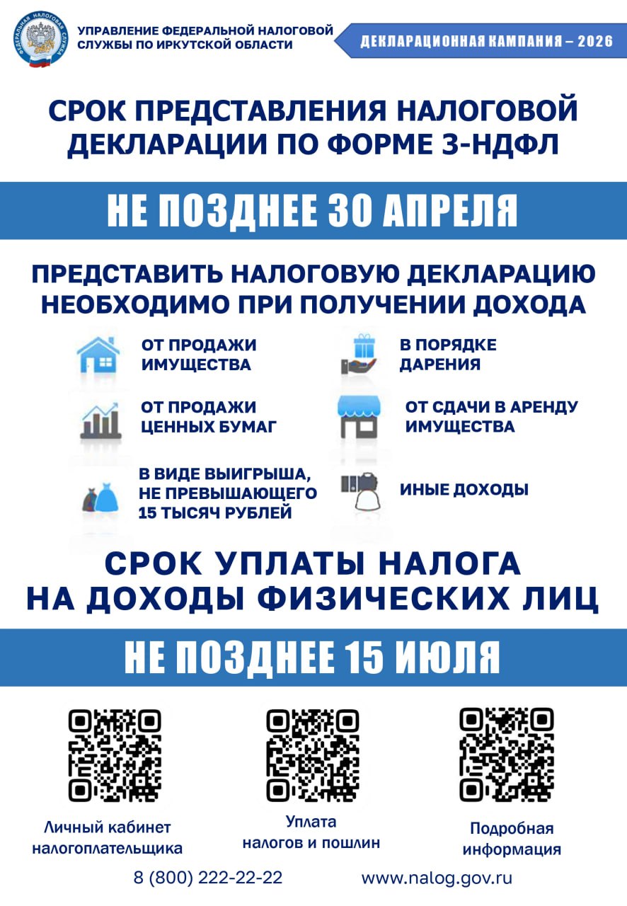 Иркутянам напоминают о сроках подачи налоговых деклараций 3-НДФЛ.
