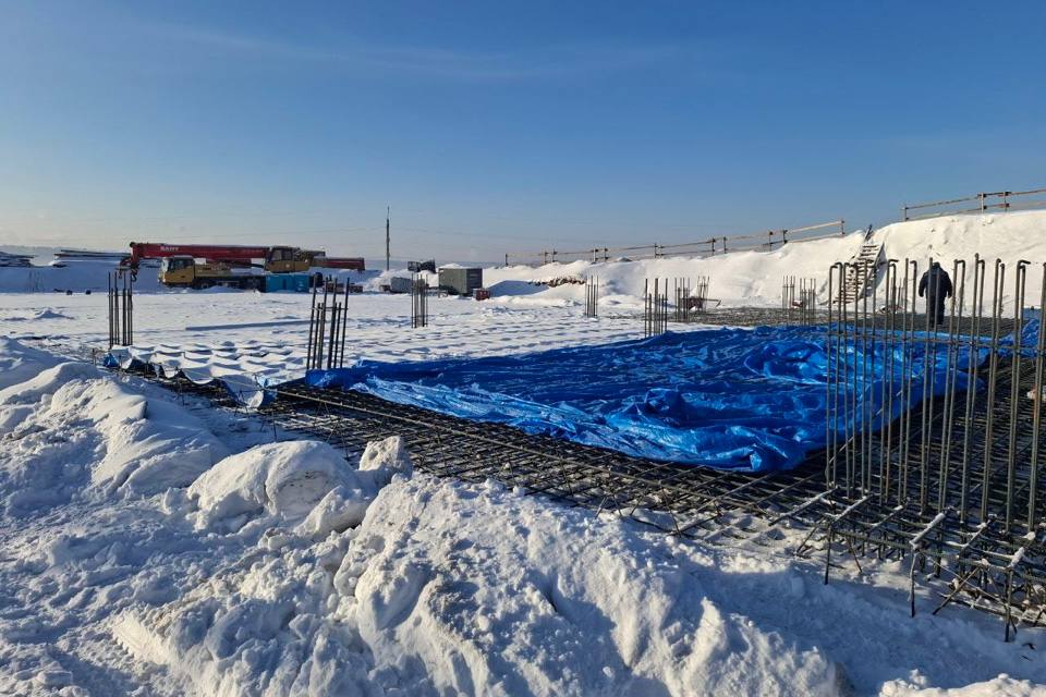 В настоящий момент бригады подрядчика ведут работы по армированию фундаментной плиты толщиной 500 мм это основа будущего монолитного железобетонного каркаса здания.
