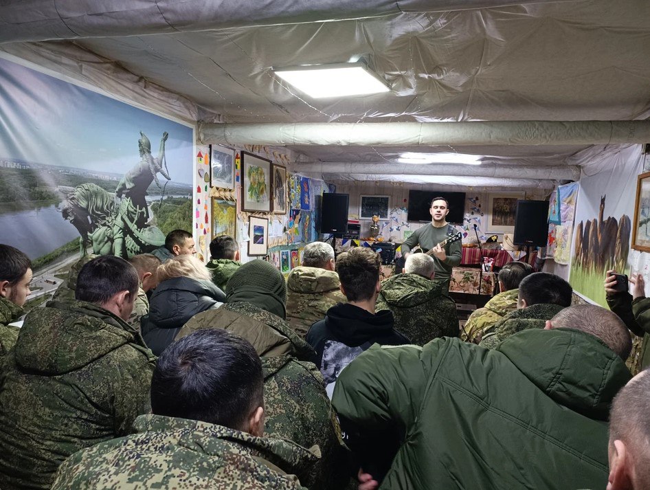 Но для того, чтобы поддержать ребят и жителей Донбасса, у творческих людей есть еще одно мощное средство — искусство. Поэтому группа артистов музтеатра отправилась туда, где сегодня сила искусства, может быть, нужнее всего. Со спектаклем «Позывной Теркин» и концертной программой они побывали в воинских частях и населенных пунктах Луганской и Донецкой Народных Республик.