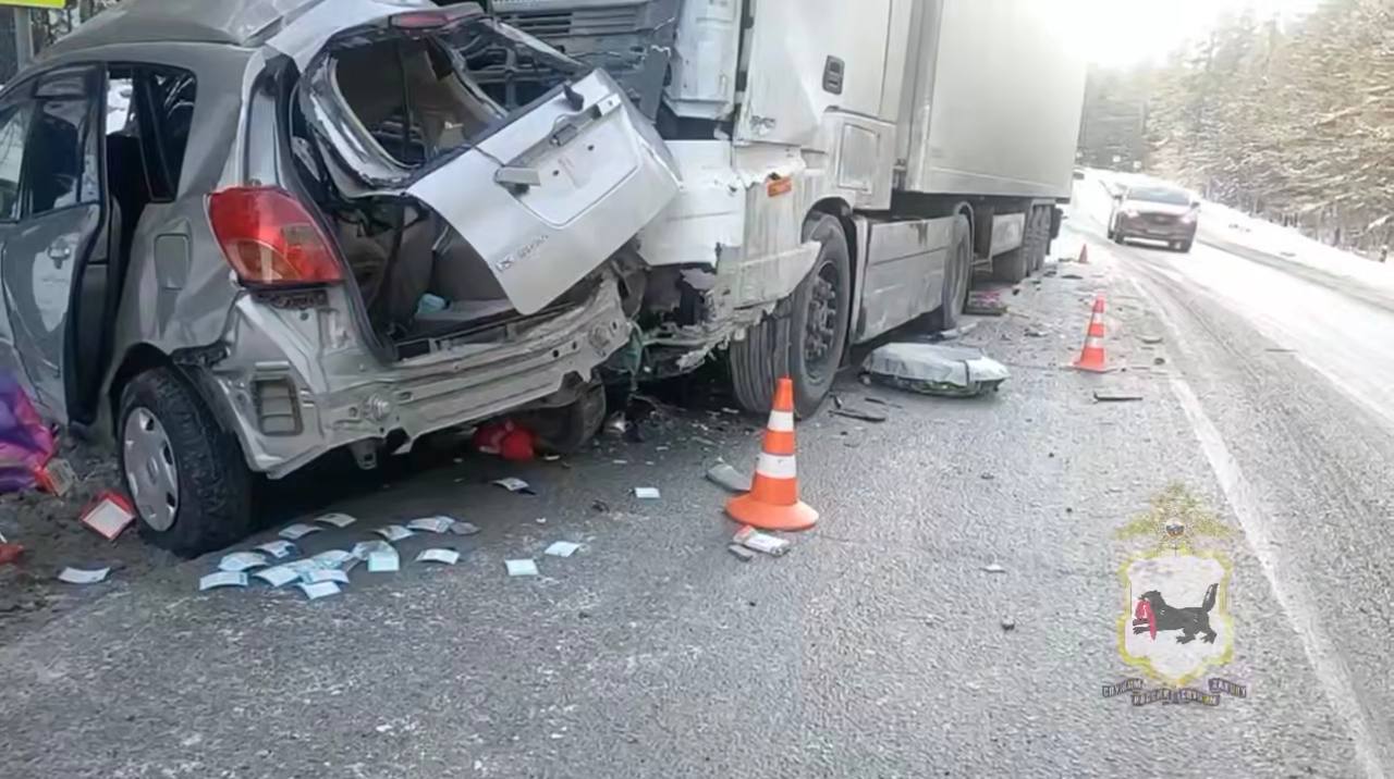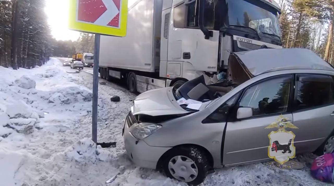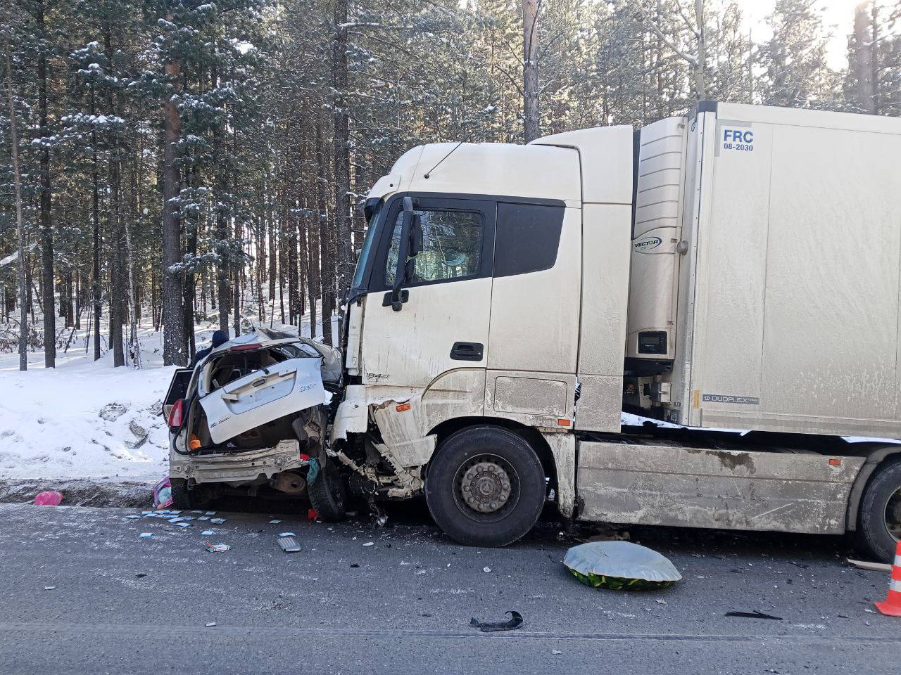 Трагедия произошла около двух часов дня на 78-м километре федеральной трассы Р-258, недалеко от поселка Глубокая. По предварительным данным Госавтоинспекции, молодая мама за рулем «Тойоты Короллы Спасио» при повороте не справилась с управлением на скользкой дороге. Автомобиль вынесло на встречную полосу, развернуло боком. В этот момент в него на полном ходу врезался грузовик «Фотон».