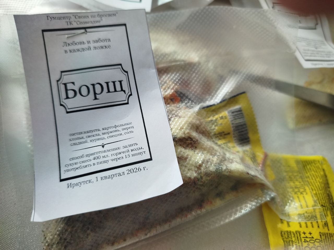 Волонтеры центра «Своих не бросаем», организованного на базе муниципального творческого клуба «Созвездие» в Ново-Ленино, оказывают вкусную и полезную помощь фронту. Иркутяне готовят супы быстрого приготовления и отправляют их в зону специальной военной операции.