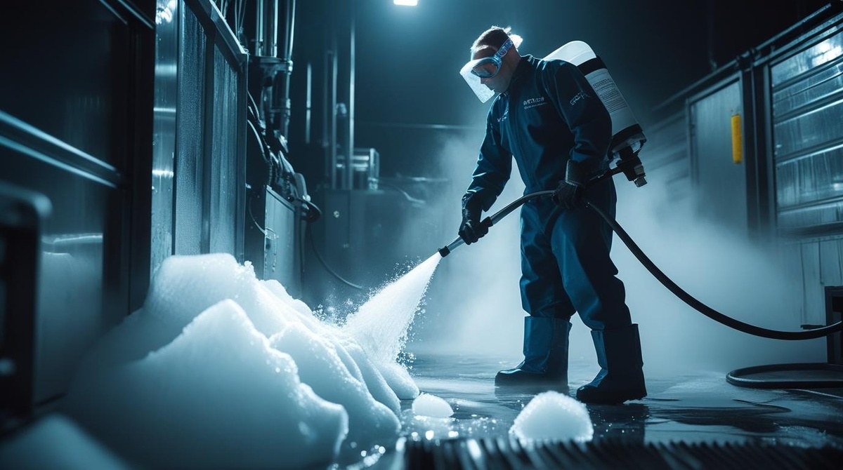 С другой стороны, криоочистка, основанная на сублимации сухого льда, устраняет эти риски. Данный метод подразумевает физическое, а не химическое взаимодействие с загрязнениями. Гранулы льда, воздействуя на поверхность, удаляют грязь при помощи своей кинетической энергии и процесса, схожего с микровзрывом. Для сотрудников, которые прошли обучение, главные риски сводятся к шуму и воздействию холода, что можно легко компенсировать стандартными средствами индивидуальной защиты. Кроме того, отсутствие токсичных испарений существенно улучшает санитарные условия труда, что крайне важно для предприятий, стремящихся соответствовать стандартам ESG.