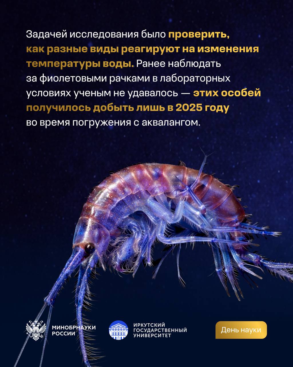 Эксперимент сотрудников Иркутского государственного университета с байкальскими рачками, задуманный как наблюдение за реакцией на изменение температуры воды, неожиданно превратился в наглядную демонстрацию законов выживания. Один аквариум, два вида амфиподов — и результат, который позволил по-новому взглянуть на поведение и маскировку эндемичных обитателей Байкала.