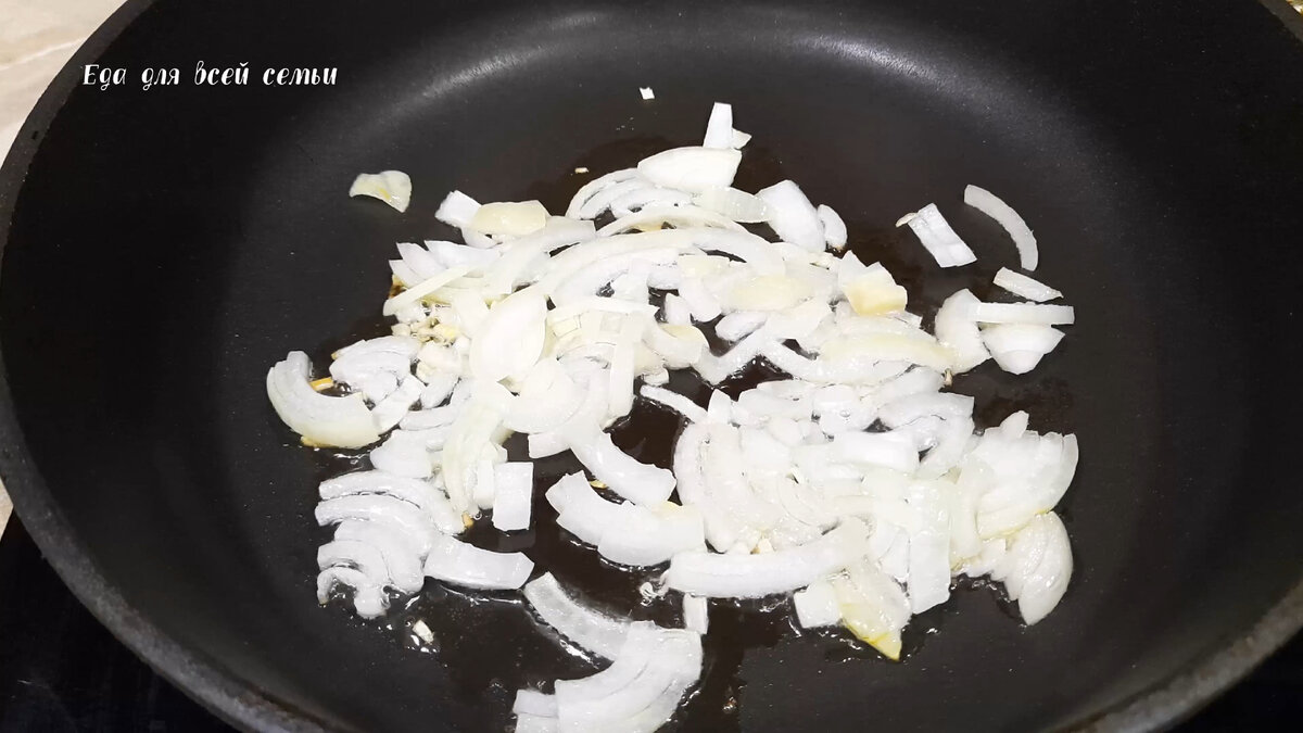 Начнем с приготовления лука. Обжарьте его на небольшом количестве масла до золотистой корочки — именно в этом процессе лук приобретает особую сладость и аромат.