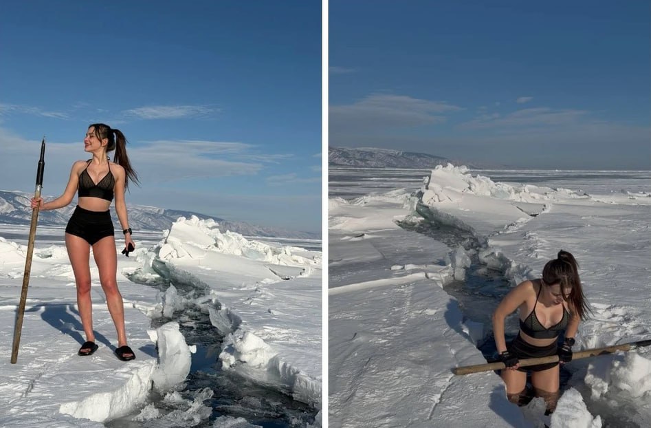 В Сети обсуждают видео, на котором туристка совершила рискованное погружение в открытую трещину на Байкале. На кадрах, девушка, одетая в купальник, постепенно спускается в воду. Страховки нет, веревки тоже, вместо них – лишь палка, похожая на черенок от лопаты. Ее явно положили поперек разлома, даже ничем не закрепив. К слову, температура воздуха в это время года на Байкале -12 градусов, а в воде – не выше нуля.