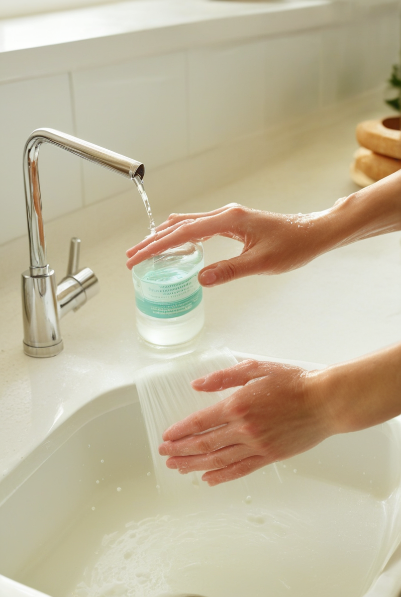 При выборе моющего средства для посуды необходимо ориентироваться не только на его очистительные свойства, но и на безопасность для кожи. Множество продуктов содержат жесткие ПАВ, способные вызывать раздражение, особенно при чувствительной коже. Поэтому стоит внимательно изучать состав и выбирать гипоаллергенные варианты, предпочтительно с увлажняющими компонентами, такими как глицерин. Эти формулы обеспечивают мягкое мытье и защищают от сухости.