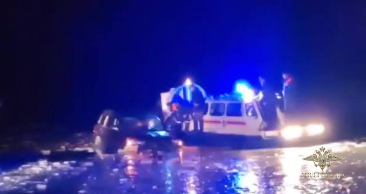 Спасатели оперативно эвакуировали пострадавших на воздушной подушке, а затем с помощью буксировочного троса вытащили автомобиль на лёд и на берег.