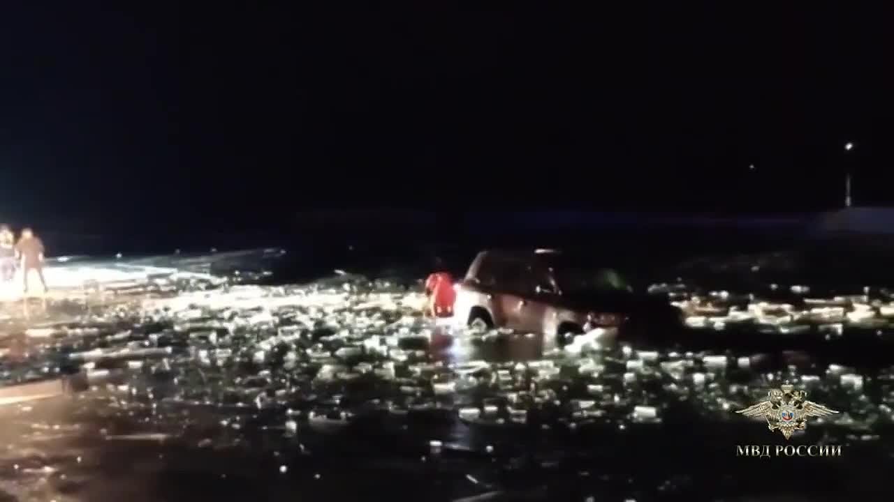 Полицейские и спасатели обнаружили застрявший во льду внедорожник. За рулем была женщина, на пассажирском сиденье — ее ребенок-подросток. Самостоятельно выбраться из автомобиля они не могли. Их эвакуировали на борт хивуса. Машину при помощи буксировочного троса вытащили на лед, а затем доставили на берег. Кадрами спасательной операции в соцсетях поделилась официальный представитель МВД России Ирина Волк.