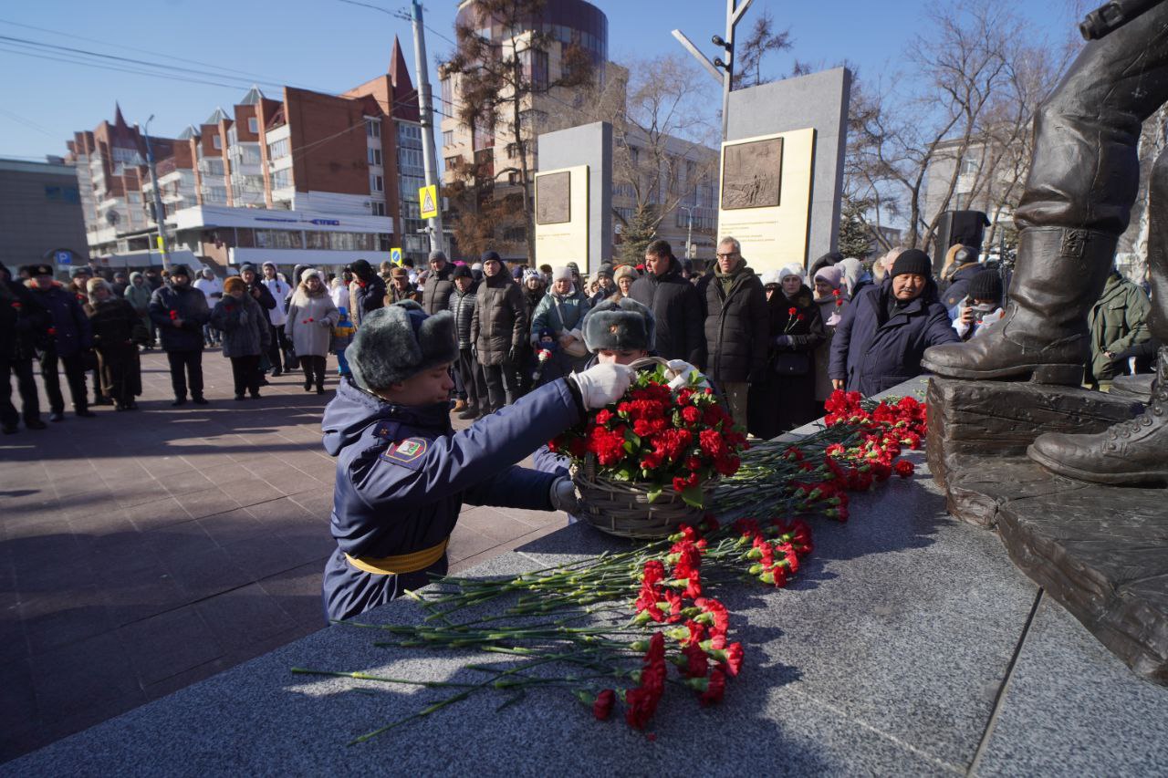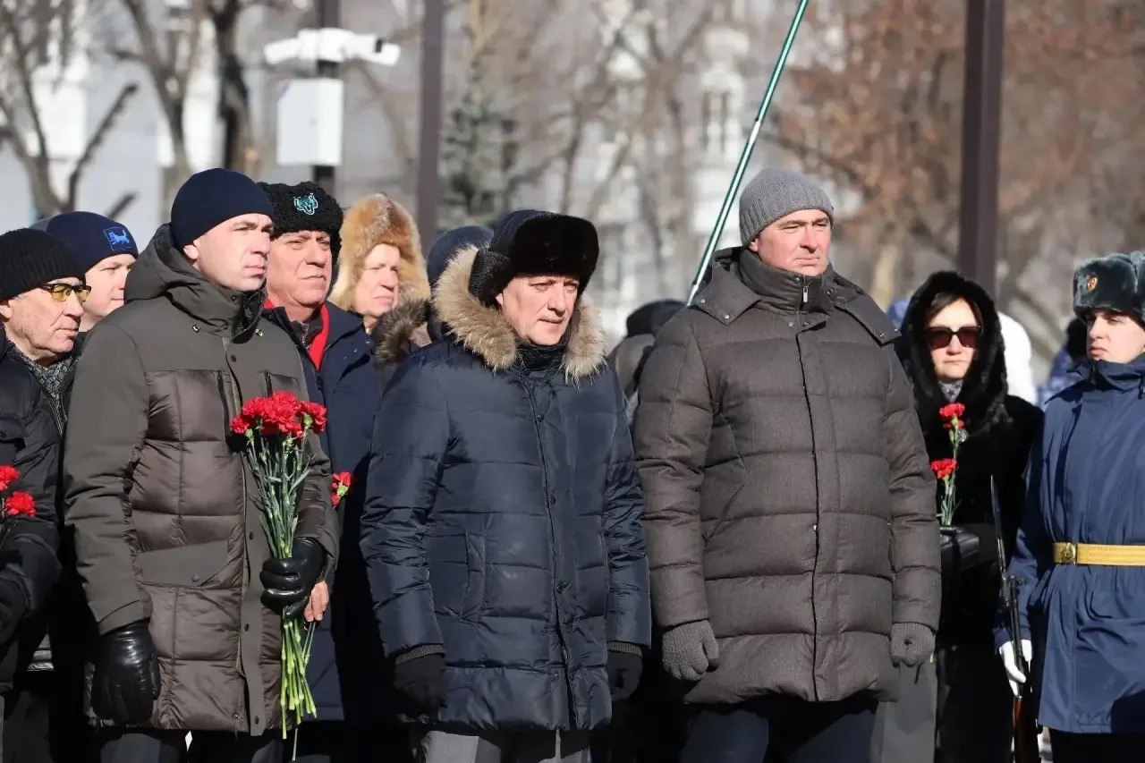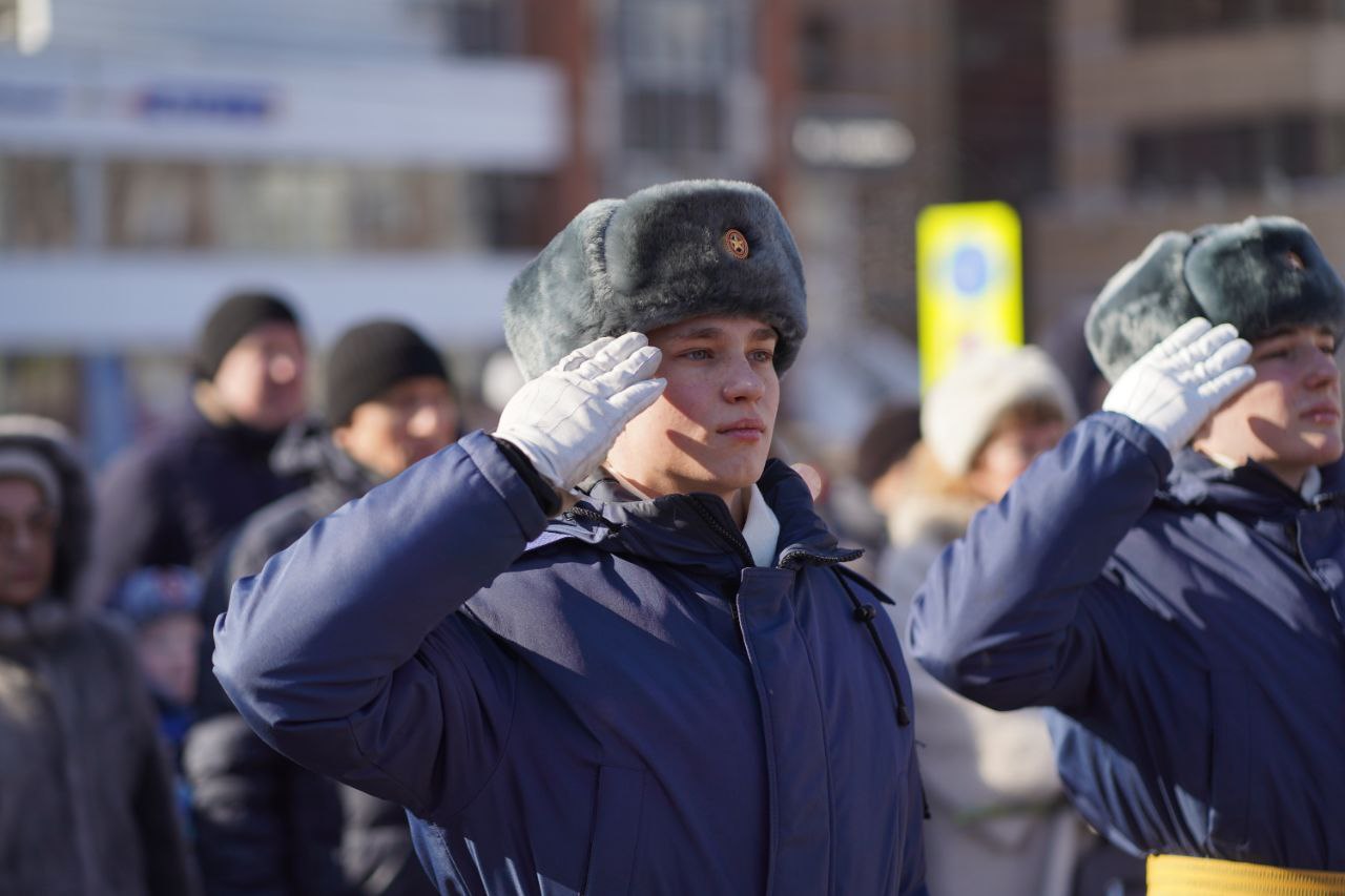 Губернатор Игорь Кобзев принял участие в митинге, посвященном Дню защитника Отечества, и посетил военный госпиталь