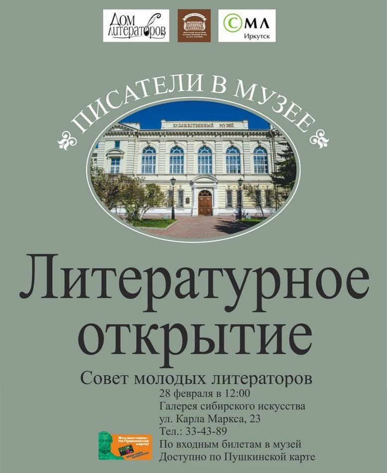Иркутский художественный музей совместно с Домом литераторов запускают новый проект — «Писатели в музее», посвященный юбилею нашего любимого города!
